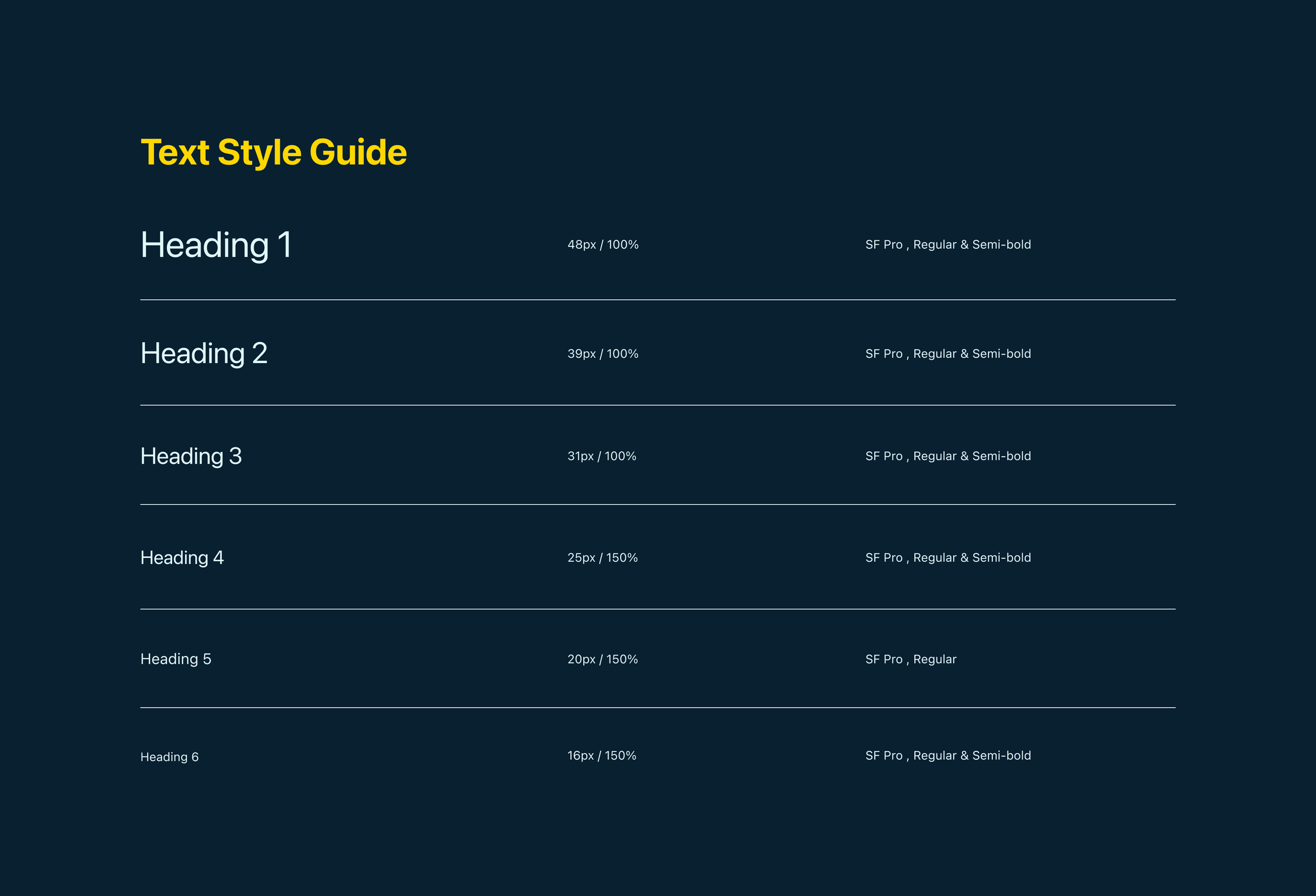 For the brand guidelines, I chose the San Francisco font for body text and the NY font for headings, as recommended by Apple for iOS apps, to ensure users would see a familiar font pairing. I used Apple's SF symbols for iconography to maintain a cohesive appearance with simple and intuitive icons. For the color scheme, I selected hues that divers often encounter, specifically dark blue, light blue, and yellow. I followed the 60-30-10 rule, making dark blue the dominant color, light blue the secondary color, and yellow the accent color.