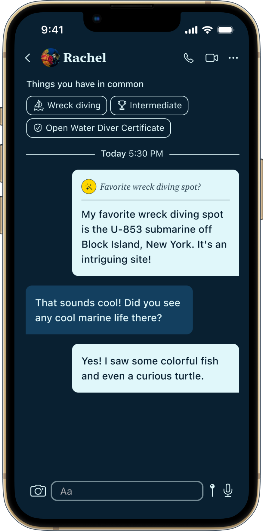 Begin chatting and start looking at dive spots to share with your new dive buddy