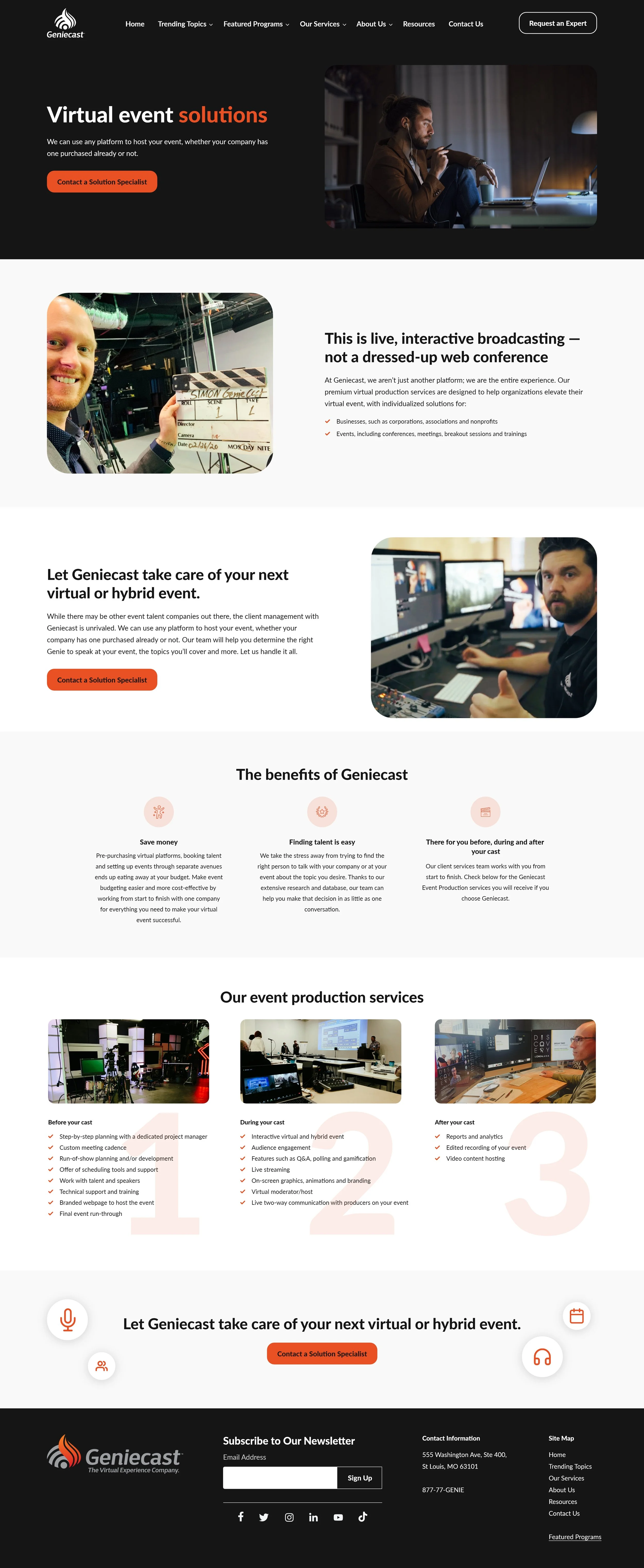 The owners of Geniecast, a video production business that creates virtual event solutions, wanted their website to be redesigned and rebranded to match their values and business goals.