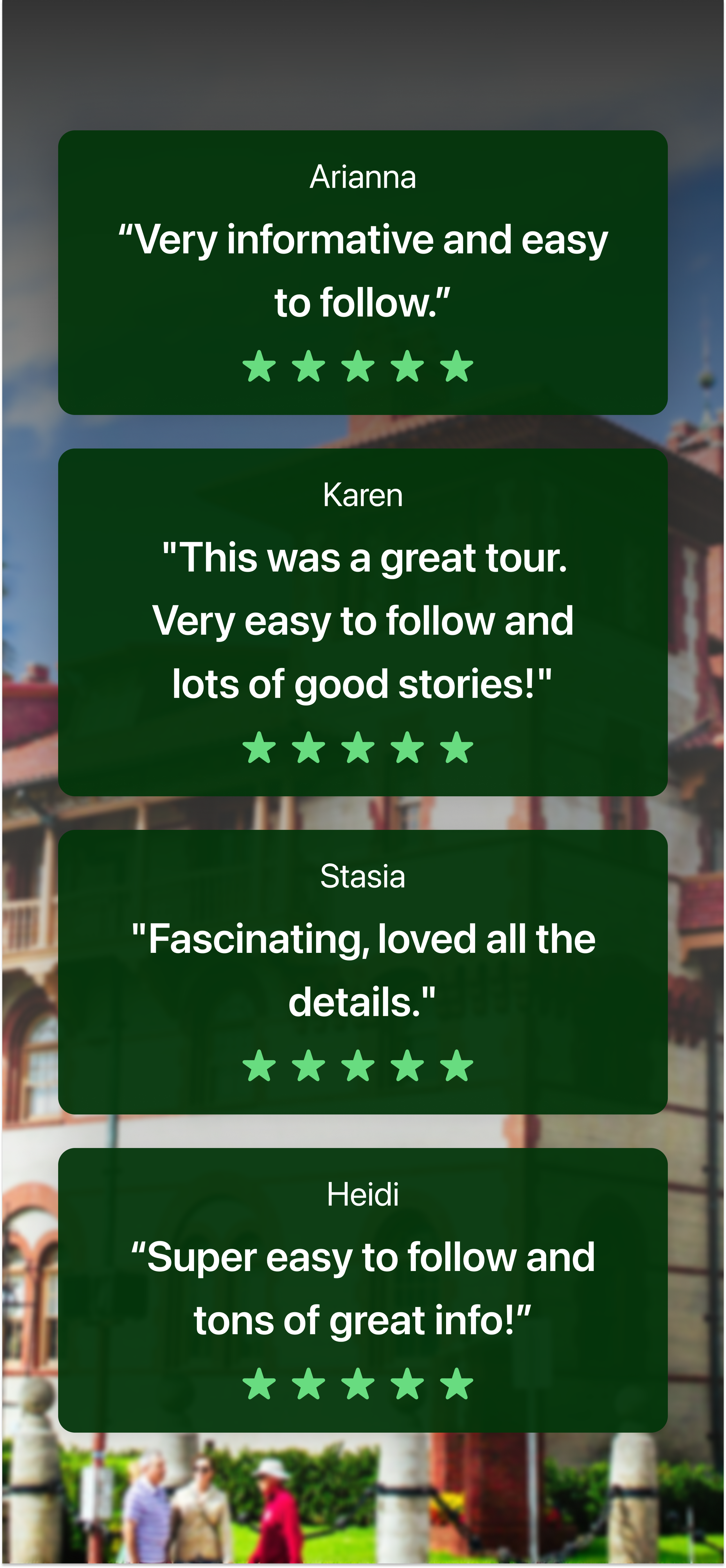 After receiving the approval of the WalknTours owner for the general app screenshots and inserting the owner’s internal reviews, I started working on the Charleston and Santa Fe custom product pages. I maintained consistent branding to ensure a cohesive appearance across all screenshots. For each set of screenshots, I adjusted the background imagery and user interface to match each city.