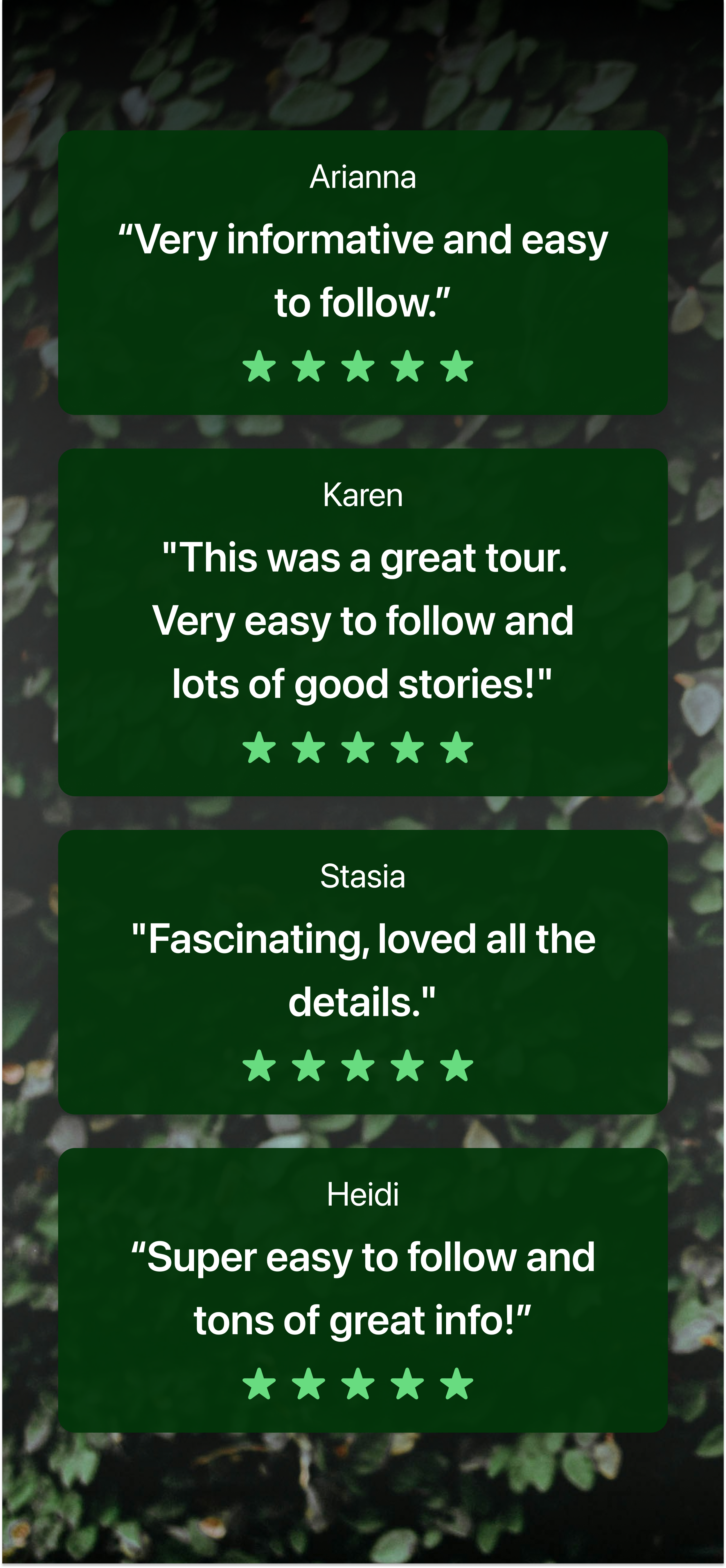 I created a competitive analysis to better understand how the app’s competitors, specifically other walking tour apps, displayed their app’s unique features. I analyzed their app screenshots to determine a common layout, visual hierarchy, font, and imagery used.